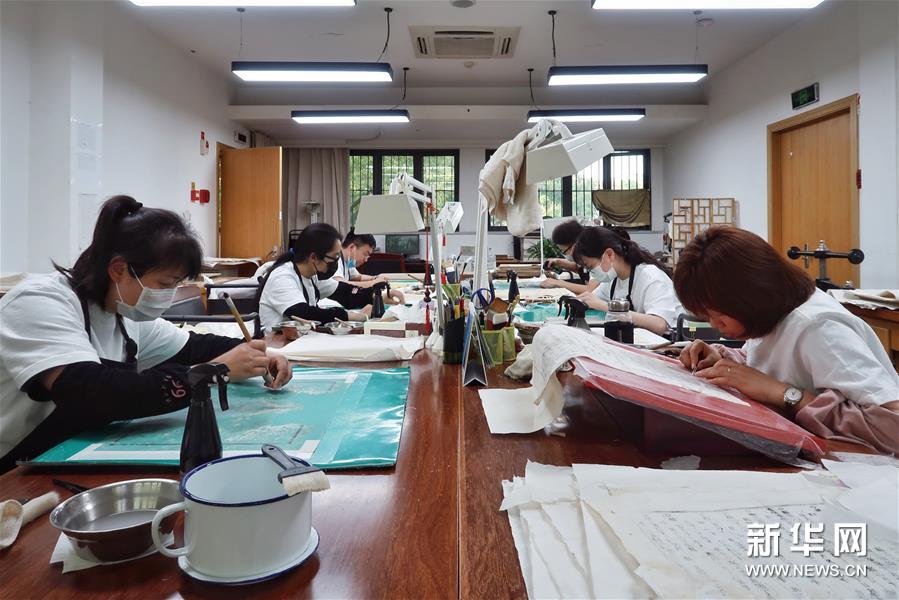天一閣藏品修復部目前有修復師14人,每年約修復古籍14000余頁。據(jù)介紹,修復一冊古籍通常需要1至2個月,有的甚至需要1年以上。 新華社記者 鄭夢雨 攝