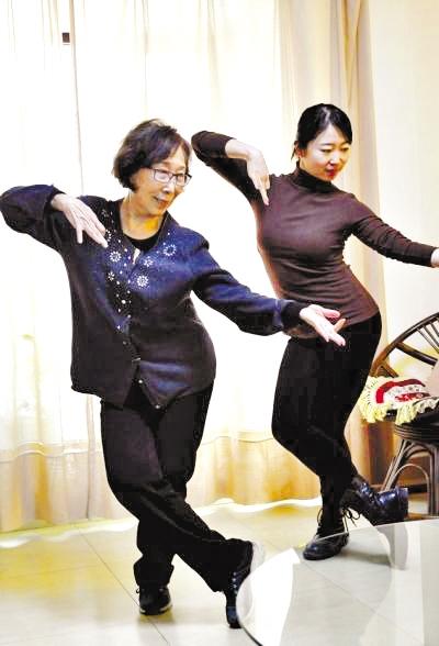 高金榮(左)指導蘭州文理學院的舞蹈老師舞藝