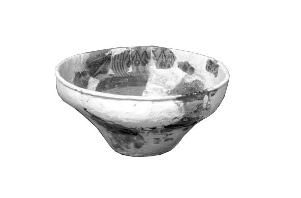 這件彩陶盆發(fā)現(xiàn)于武威市磨嘴子遺址。1991年春天,正在進(jìn)行文物普查的人們?cè)诟拭C武威市新華鄉(xiāng)磨嘴子遺址采集到一批殘破的彩陶片。返回室內(nèi)整理時(shí),發(fā)現(xiàn)這些彩片屬同一個(gè)體,遂多次前往該址,反復(fù)尋找缺失的殘片。功夫不負(fù)有心人,最終使這件陶器大體得以復(fù)原。最終能拼出一個(gè)彩陶盆,命名為舞蹈紋彩陶盆。