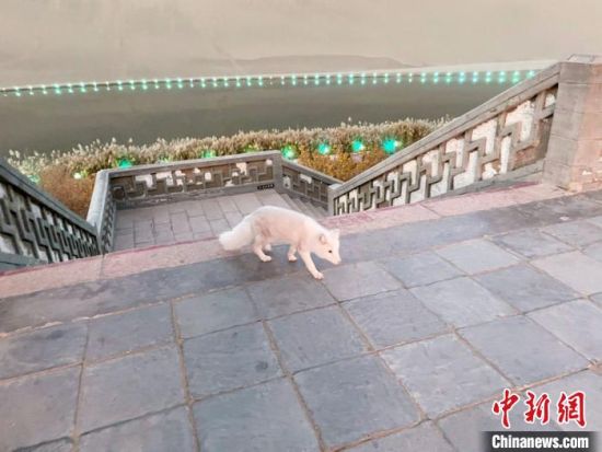小白狐“打卡”甘肅敦煌鳴沙山月牙泉景區(qū)