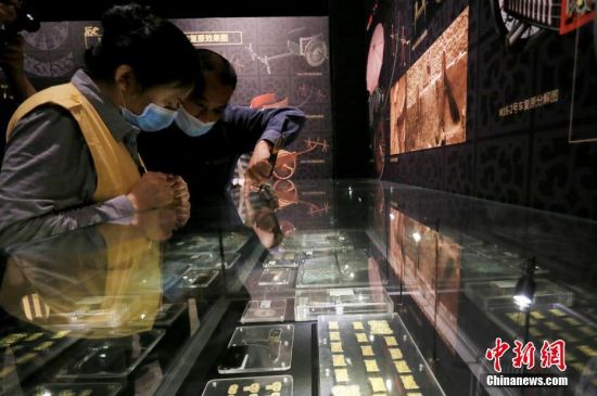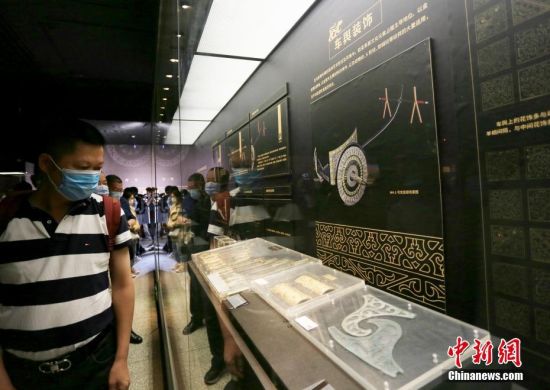 5月18日,蘭州民眾在甘肅省博物館參觀馬家塬出土的車馬飾、車馬器。中新社記者 高展 攝