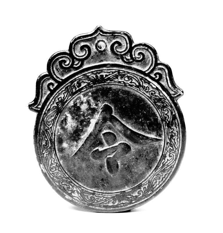 夜巡牌,高14厘米,寬11.5厘米,厚0.5厘米,紅銅制作。大體呈圓形,上面是狀如柿蒂形的鈕,鈕上雕刻有卷云紋,有一孔,用來穿繩。牌的正面為一楷書“令”字,字外三道弦紋,夾一圈卷云紋,背面為“肅字捌佰肆拾伍號(hào)”“永昌衛(wèi)指揮使司夜訓(xùn)牌”。