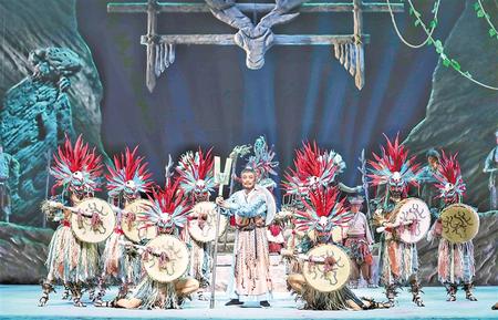 應當說,演員對大禹、涂嬌、山戎和大禹母親的演繹都很出彩。他們的唱腔與道白字字清晰、句句明了,或鏗鏘有力,或逶迤綿長,表現(xiàn)出了各自的風格。