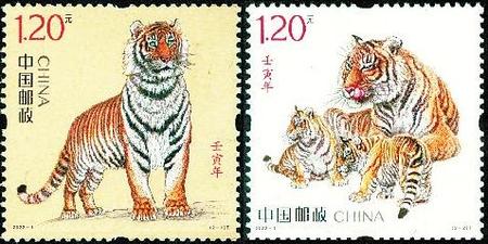 2010年1月5日發(fā)行第三輪生肖郵票第七套《庚寅年》特種郵票,全套1枚,由中央美術學院設計學院教授馬剛設計。設計者利用三維造型的特點采用擬人化的造型手法,勾勒出一只氣宇軒昂、活潑動人的卡通虎形象。