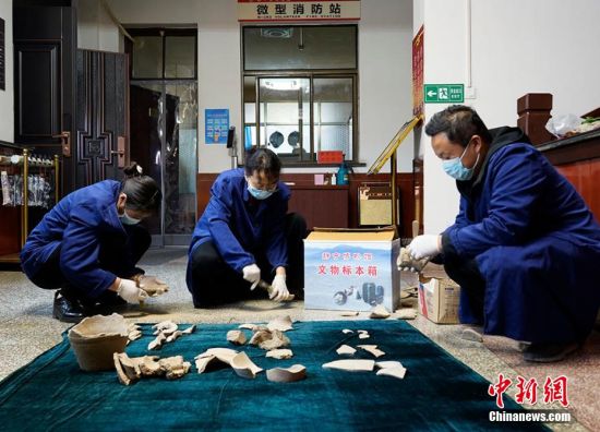 3月9日,甘肅平?jīng)鍪徐o寧縣博物館工作人員根據(jù)村民提供線索,在當(dāng)?shù)刭Z河鄉(xiāng)竇坪村發(fā)現(xiàn)仰韶文化人首型器口、石器、佩飾、彩陶片、紅陶片等文物標(biāo)本200余件。靜寧縣博物館工作人員表示,這一重大發(fā)現(xiàn)對研究當(dāng)?shù)貧v史文化有重要意義。 夏劍鋒 攝