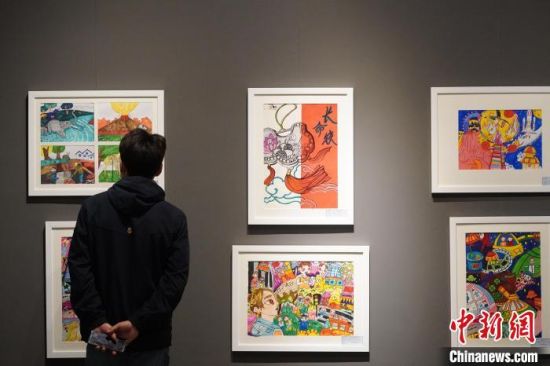 5月15日,甘肅蘭州,市民參觀少兒美術(shù)展覽。