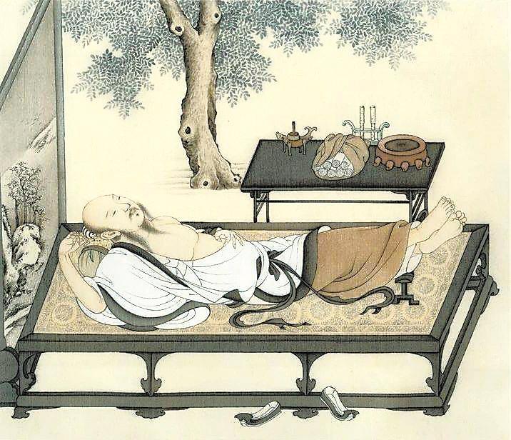 唐代的虢國夫人的“夜明枕”更為稀奇。五代王仁裕在《開元天寶遺事》中有記載:“夜明枕”,其實是一種玉石枕頭:“虢國夫人有夜明枕,設(shè)于堂中,光照一室,不假燈燭。”此外,“石膏枕”也是古人的消暑佳物,除了降溫納涼,還有解暑安神的保健功能。唐代詩人薛逢寫《石膏枕》贊頌這種神器:“表里通明不假雕,冷于春雪白于瑤。朝來送在涼床上,只怕風(fēng)吹日炙銷。”