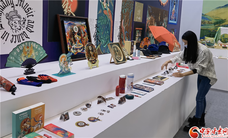 目前,甘肅省主題展館及分館已完成搭建和布展。讀者集團文旅公司運營經理馬倩云介紹,甘肅省主題展館由形象綜合展區(qū)、文藝創(chuàng)作展演、數字敦煌展區(qū)、文化出版展區(qū)、非遺傳承展區(qū)、隴上好禮展區(qū)六大專題展區(qū)組成,突出敦煌文化、黃河文化、伏羲文化、長城文化、革命文化等甘肅特色文化元素,通過精選的具有標志性的文創(chuàng)產品、圖書期刊、精美非遺等約600種4000件展品,全景式展現甘肅獨特豐富的文化資源、豐碩的文化改革發(fā)展成果和巨大的文化產業(yè)發(fā)展優(yōu)勢。