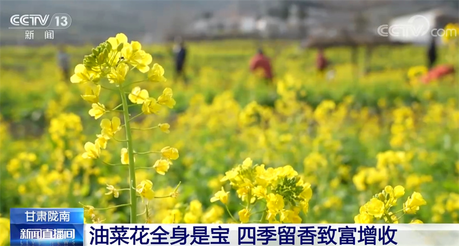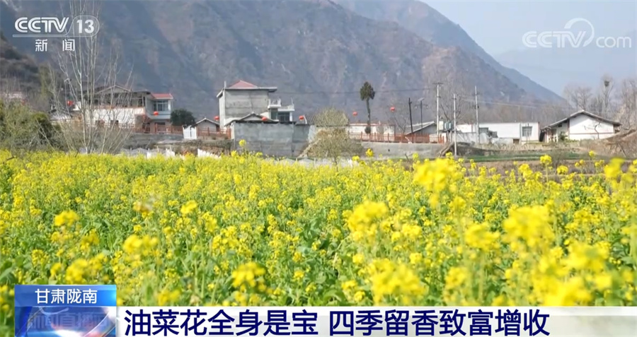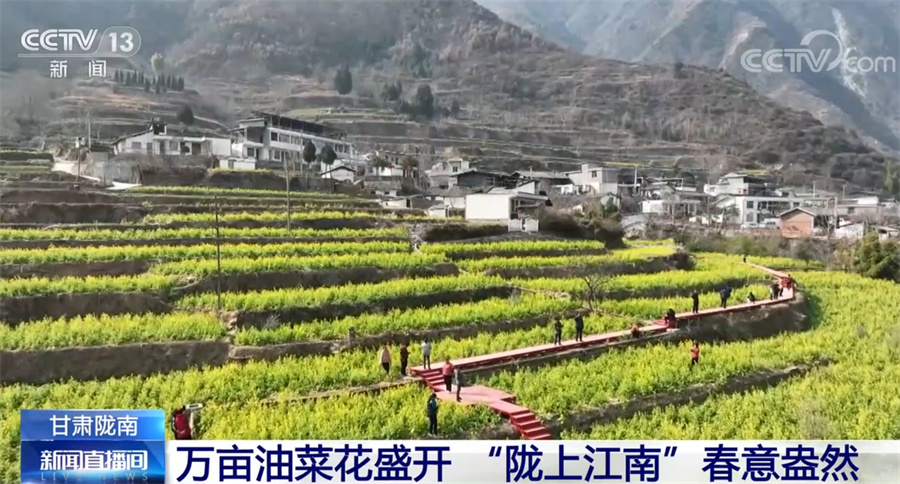 央視網(wǎng)消息:甘肅省地處西北腹地,但在其最南端的隴南市,山間的油菜花從臘月開始就逐漸開放,如今已經(jīng)進入了盛花期,一派欣欣向榮的景象,給西北的初春增添了蓬勃生機。