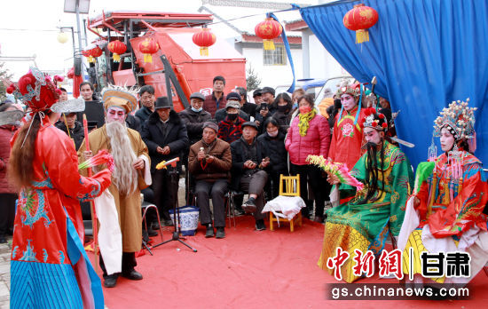 中新網(wǎng)甘肅新聞2月8日電 (朱玲)農(nóng)歷正月,走進(jìn)華亭市西華鎮(zhèn)西塬村,山村隱掩處,遠(yuǎn)遠(yuǎn)聽聞古樸蒼勁的戲曲腔調(diào)傳來。村部院落里,村民或站或蹲,里三層外三層地將表演者圍了個(gè)水泄不通。