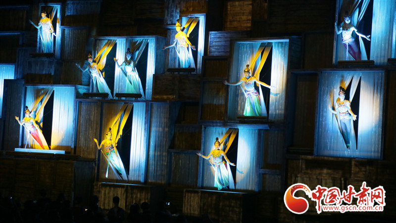 蜚聲國際的敦煌,已然在重新書寫著千年傳奇。以《又見敦煌》為代表的演藝作品,用中國人自己的方式,帶領(lǐng)觀眾觀千佛洞、聽古樂聲,把莫高窟飛天壁畫的前世今生和一代代敦煌人以青春奉獻(xiàn)大漠的故事講給大家,向世界展示東方文化的深厚底蘊和神秘魅力。使古人千年的智慧在現(xiàn)代重綻光芒。在創(chuàng)新傳承中展現(xiàn)敦煌的自信與風(fēng)采,絲綢之路的繁華與美麗。