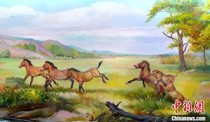 臨夏盆地早更新世真馬動物群生態(tài)復(fù)原圖。 李榮山 繪制 攝
