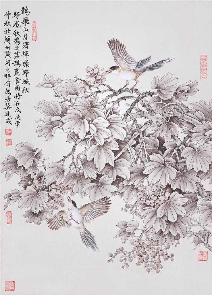 莫建成、莫曉松的花鳥畫藝術(shù)是在隴原大地的文脈浸染和敦煌藝術(shù)的熏陶滋養(yǎng)下,上下求索、靈苗自探的結(jié)晶,以其獨(dú)特的畫風(fēng),成為西北畫壇上一道亮麗的景觀。此次展覽展出兩位藝術(shù)家傾情創(chuàng)作的100多幅精品力作,將傳統(tǒng)積淀與時(shí)代審美相連接,實(shí)現(xiàn)了自然景觀與人文意象有機(jī)融合,展現(xiàn)了對(duì)西北大地的情愫、對(duì)優(yōu)秀傳統(tǒng)文化的重尋,體現(xiàn)出藝術(shù)家致力于中國“工筆花鳥畫傳承與發(fā)展”的深度思考與實(shí)踐。本版特選登其中部分作品,以饗讀者。——編者