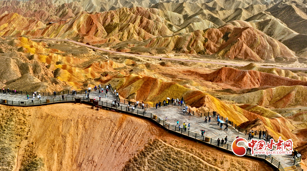 5月1日,甘肅張掖七彩丹霞旅游景區(qū)內(nèi)游人如織,來自全國各地的18000多名游客慕名前來,欣賞獨特的丹霞地貌,領略大自然雄奇壯觀的景色。