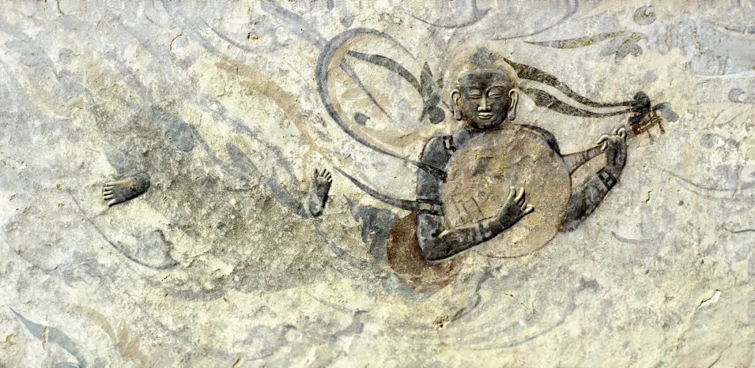 ▲第4窟頂部薄肉塑伎樂(lè)飛天,北周時(shí)期。