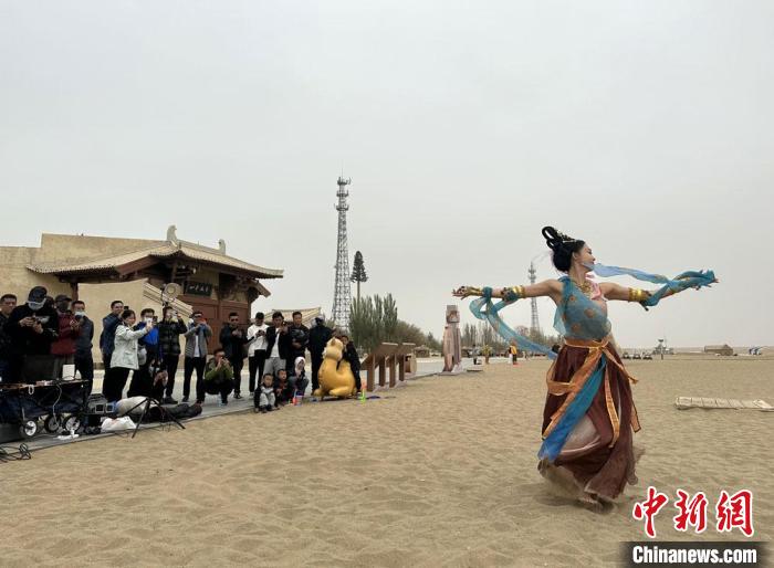 近年來(lái),敦煌市委網(wǎng)信辦以“壁畫變裝秀”“飛天舞蹈短視頻”“漫說敦煌歷史”等形式,弘揚(yáng)敦煌文化。6月以來(lái),內(nèi)地很多敦煌舞愛好者涌向敦煌,穿上以飛天服飾為代表的各種古裝,在絲綢之路旅游網(wǎng)紅“打卡地”鳴沙山月牙泉、玉門關(guān)、陽(yáng)關(guān)等景區(qū)拍照、直播,各種不同的古裝服飾也為“大漠孤煙直”的絲路古道增添了無(wú)限色彩。