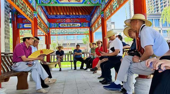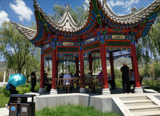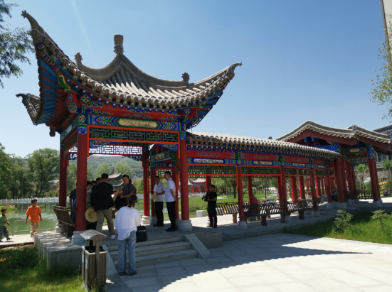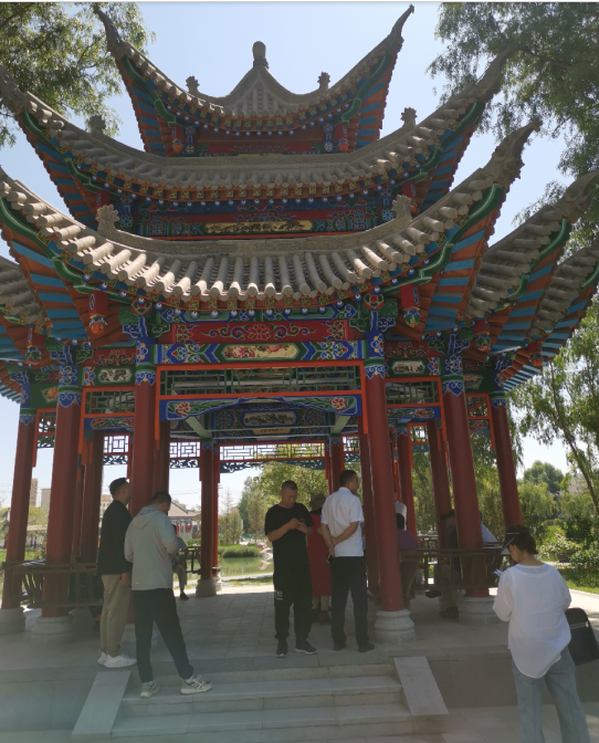 癸卯夏末,甘肅省、蘭州市著名詩(shī)人聯(lián)家一行10余人,應(yīng)邀來(lái)到著名的史前遺址——齊家文化發(fā)現(xiàn)和命名地——廣河縣,考察該縣城新建成的公園,為其命名,并撰寫(xiě)楹聯(lián)、匾額,為橋、亭、榭、湖、軒等景點(diǎn)命名。