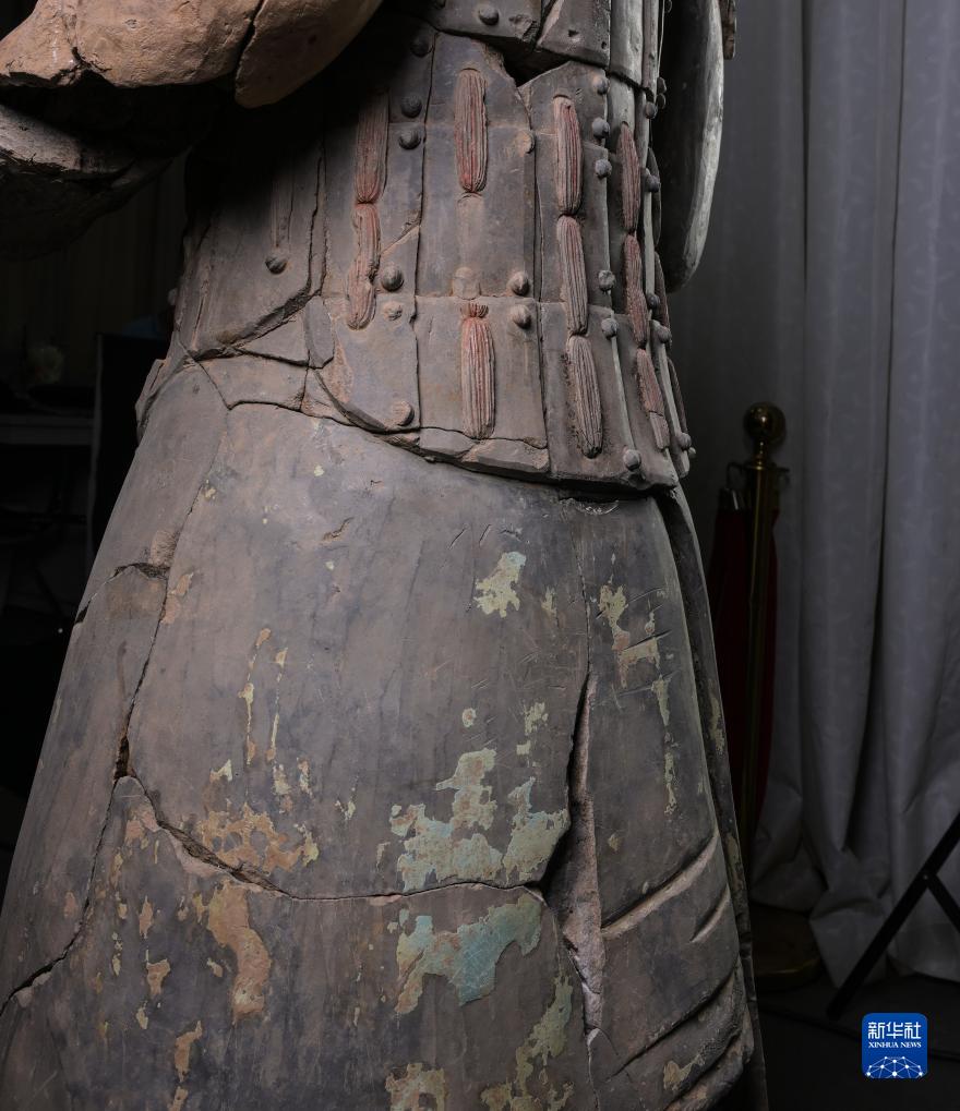 這是秦俑身上彩繪還原修復(fù)后的樣貌(8月23日攝)。