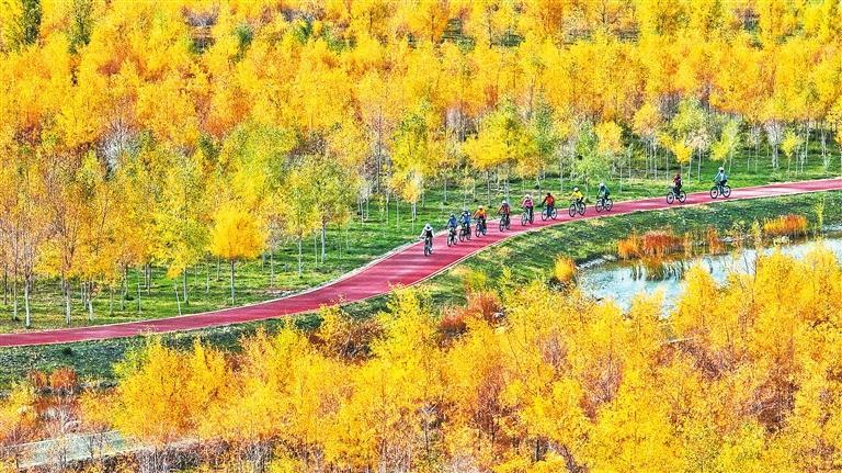 張掖奧林匹克森林公園成為市民健身休閑的好去處。新甘肅·甘肅日?qǐng)?bào)通訊員 王將