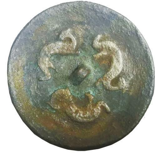 1981年出土于金川三角城遺址西崗墓群,為國家一級文物。直徑5厘米,鏡面上模鑄三條軀體蜿蜒的對稱龍紋,三龍首尾相接,環(huán)繞鏡鈕一周,展現(xiàn)了春秋戰(zhàn)國時期金昌先民杰出的青銅鑄造工藝以及非凡想象力,現(xiàn)為金昌市博物館館標。該文物是沙井文化青銅器的杰出代表,洋溢著濃郁的草原青銅文化特色,是中西方文化交流的典型物證。