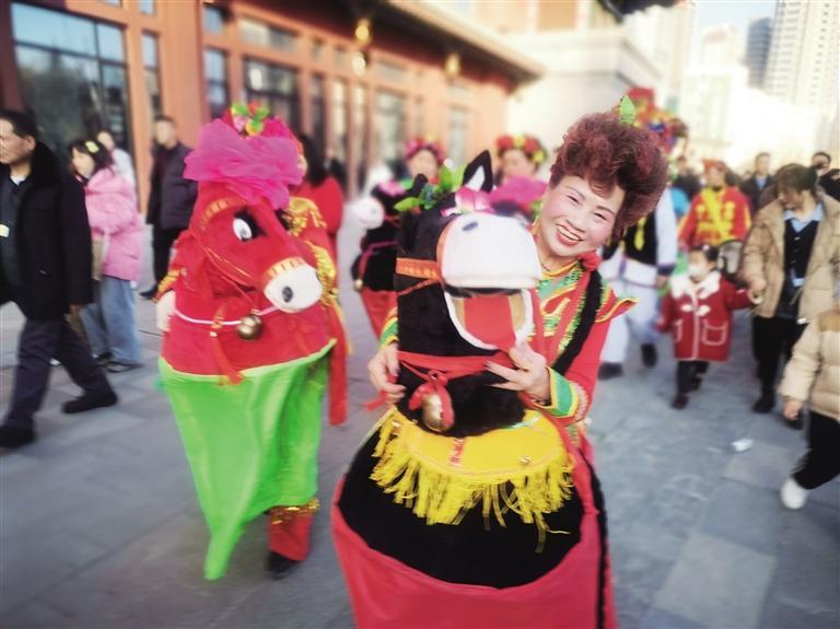 從臘月二十三開始,蘭寶平幾乎每天都要參加表演,與記者見面時(shí),已是當(dāng)天她在蘭州老街的第四場(chǎng)表演。一天下來(lái),她從東扭到西,出老街進(jìn)廣場(chǎng),每到一處都是人們歡樂(lè)的源泉和目光的焦點(diǎn)。