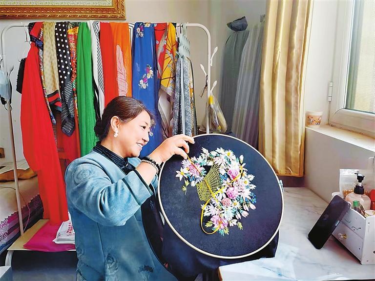 慢慢地,她的手法越來(lái)越嫻熟,繡的花樣也越來(lái)越多,現(xiàn)在隨手便可繡出形態(tài)逼真的幾十種樣式。“我小學(xué)時(shí)就跟著家人學(xué)繡花,想不到刺繡手藝還能賺錢(qián)?,F(xiàn)在我想讓更多婦女通過(guò)刺繡手藝增收致富,把刺繡技藝傳承下去”。
