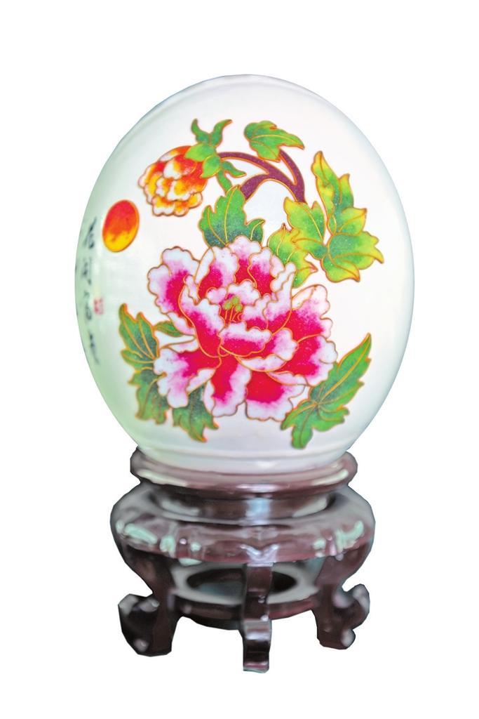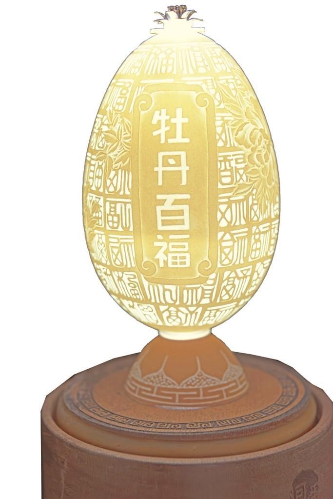 楊星國(guó)雕刻過(guò)的作品達(dá)兩千多件,作品《牡丹亭》是他用最新的拼雕手法創(chuàng)作的,鴕鳥蛋殼細(xì)分成300片,打磨成“瓦片”樣,逐片貼成古建筑中亭頂蓋狀,形成牡丹亭之樣,做成外層的“亭”;內(nèi)層的“牡丹”則用鴯鹋蛋殼,利用其自然色,依照牡丹層層雕透,第一層深墨、第二層墨綠、第三層淡綠、第四層白色從外到內(nèi)雕刻,作品既有國(guó)畫的神韻又有雕刻的立體藝術(shù)之美。浮雕、陰雕、陽(yáng)雕、鏤空雕、拼雕等手法,在《牡丹亭》作品里全部顯現(xiàn)。為了讓作品表達(dá)的效果更充分,楊星國(guó)又加了一些機(jī)械原理讓其旋轉(zhuǎn),還加了燈光,于是,3個(gè)鴕鳥蛋殼與1個(gè)鴯鹋蛋殼在楊星國(guó)的巧妙構(gòu)思中有了全新的生命。