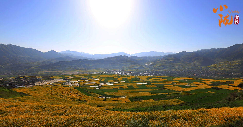 四月的武山,渭河兩岸、高山川道萬(wàn)畝油菜花競(jìng)相綻放,滿目金黃,美不勝收。