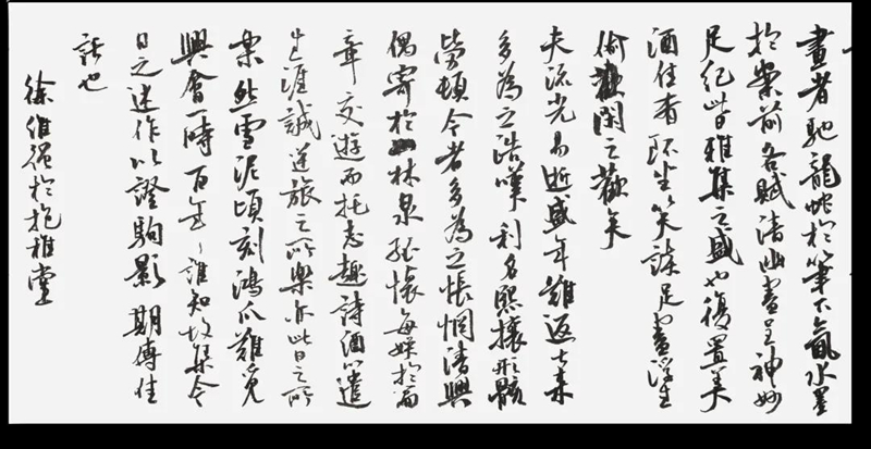 于是詞人騷客,寄快意于佳對,詠雅事以妙韻。書家畫者,馳龍蛇于筆下,氤水墨于案前。各賦清幽,盡呈神妙,足紀(jì)此日雅集之盛也。復(fù)置美酒佳肴,環(huán)坐笑談,漫飲徐吟,足盡浮生偷閑之歡矣。