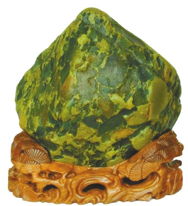 龐公石屬火山巖,質(zhì)地堅(jiān)硬,細(xì)膩濕潤(rùn),色彩豐富,深綠致密,翠碧如玉,石身間有紅、黃、白、黑等絢麗的紋理,構(gòu)成諸如古今人物、珍禽異獸、花草樹木、行云飛瀑、江河山澤等奇特紋理圖案,尤其是玉化多彩的“翠”,著實(shí)讓人心生憐愛……