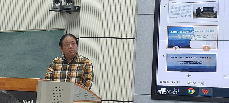 馮玉雷一直認認真真,埋頭干事。他心中有一個非常宏大的目標,向著這個目標行進過程中,腳踏實地。前幾年他在西北師范大學首開公選課《中國玉文化》,把玉文化作為專門的一門課來講,具有開拓性。玉文化作為一門學科,在全國各大高校此前還沒有先例,馮玉雷先生做了一件非常有意義的事情。這次講座對我非常有啟發(fā)。從這門課的內(nèi)涵來講,其實又是一個延續(xù):對傳統(tǒng)文化也好,考古文化也好,對甘肅省乃至整個中華大地,從玉文化開始出現(xiàn),發(fā)展到現(xiàn)在,就是一種延續(xù)。玉和玉器至堅至柔,至圣至潔,卻默默無言,但是它們告訴了我們很多以前不知道或者沒有意識到的信息,從重見天光的那一刻起,有無數(shù)信息在源源不斷的釋放,就看人們?nèi)绾卫斫?,如何解讀。如果不研究、發(fā)現(xiàn)這些玉器的內(nèi)涵,那還是相當于某種意義上的沉睡。馮玉雷創(chuàng)作小說,研究玉文化,還組織十幾次考察活動,國內(nèi)的有些大家都參與,這像不像流動的學術(shù)討論會?他的長篇小說《禹王書》出版剛剛一個月,據(jù)我所知,“玉文化、神話小說《禹王書》的學術(shù)背景”講座是首次分享,他把研究成果、創(chuàng)作成果第一時間通過課堂與同學們分享,我仿佛看到他帶著學生勇往直前,義無反顧地向前走著,這本身就是玉文化精神的傳承和發(fā)揚!我感覺到馮玉雷《禹王書》的思緒上下翻飛,縱橫馳騁,騰躍五千年。小說中有非常核心的價值內(nèi)涵,就是玉文化本身所具有的、深深進入到我們民族根脈中的文化內(nèi)涵,同時,又有就是對文學的一種激發(fā)。小說中的神話人物以及他們之間的交流、故事、語言,還有那些玉器,都非常神奇??梢灶A想,這本書的后延性非常長遠,希望玉文化班的同學能夠在馮玉雷老師帶領下,傳承發(fā)揚玉文化,完成從璞玉到玉器的轉(zhuǎn)化!