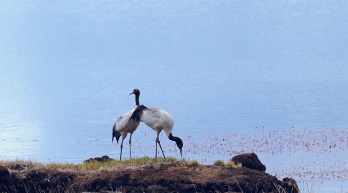 進入5月,在位于青藏高原東端的甘肅省甘南州碌曲縣尕海則岔國家級自然保護區(qū),各類候鳥也迎來了繁殖期。黑鸛、白琵鷺、黑頸鶴等珍稀鳥類,或嬉戲鳴叫,或翩躚飛舞。
