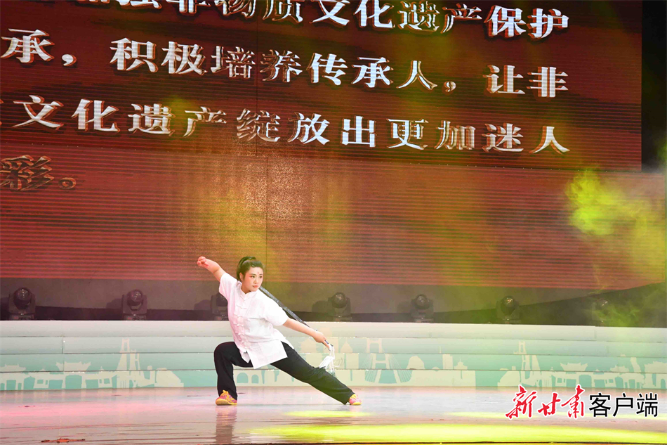 作為華夏文明的重要發(fā)祥地,這里還擁有深厚的文化底蘊和富集的非遺資源:現有國家級非遺項目8項、省級50項、市級180項,各類非物質文化遺產在八千年的歷史中不斷傳承與發(fā)展?;顒蝇F場,清水木人摔跤、武山武術、秦州夾板舞等節(jié)目展示了這片文化積淀深厚的黃土地上產生、流傳和發(fā)展的“文化絕活”。