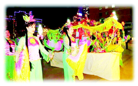 因著葫蘆河的哺育,也有了歷代風(fēng)雅文人、賣漿者流或言志或抒情的傳承,秦安蠟花舞這項(xiàng)民間舞蹈藝術(shù)在千年的時(shí)光里熠熠生輝,散發(fā)出迷人的光彩。直至今日,表演時(shí)人們都是左手托舉花燈,右手持彩綢折扇,且花燈內(nèi)裝有點(diǎn)燃的蠟燭。