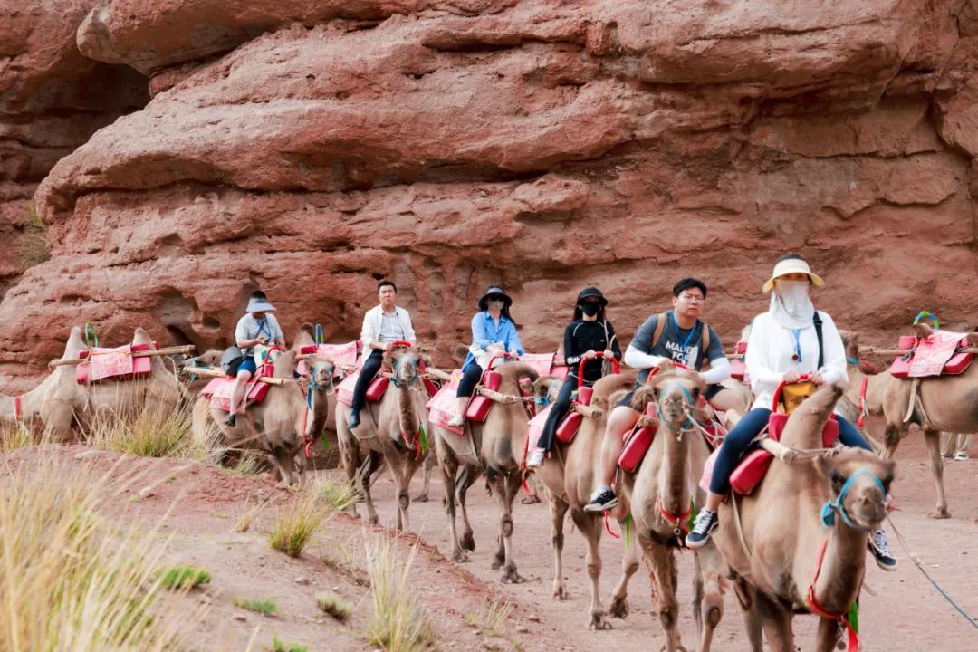 在甘州區(qū)平山湖大峽谷,采風(fēng)團(tuán)成員乘坐越野車進(jìn)入夢幻大峽谷谷底,在藍(lán)天白云下,縱橫的溝壑、林立的群峰、幽靜的森林、蒼茫的戈壁、多彩的民俗讓采風(fēng)團(tuán)成員嘆為觀止。來自福建的微博三百萬大V張文圖說:“我已經(jīng)是第三次來張掖,此刻騎著駱駝踏入峽谷,抬頭看那高聳的崖壁帶來的震撼感瞬間將我包圍。沿著峽谷前行,每一步都充滿驚喜,太讓人驚嘆了。”“這次采風(fēng)活動為我們搭建了很好的交流平臺,特別是張掖獨(dú)特的地貌和優(yōu)美的自然風(fēng)光,都是很好的攝影素材,希望大家在這里收獲滿滿!”來自飛翔旅行的曹偉說。