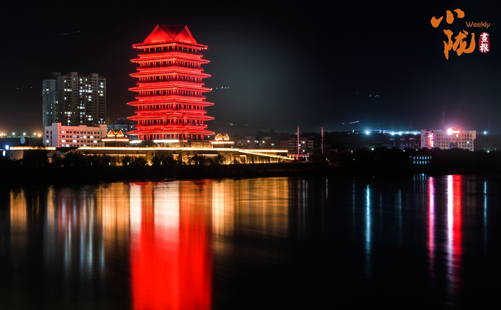 夜幕降臨,黃河之濱上的標志性建筑——蘭州黃河樓被點亮,顯得愈發(fā)美輪美奐。古風(fēng)樓閣倒影在水中泛起粼粼波光,璀璨奪目的燈光點燃金城夜色。