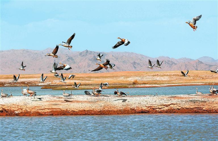 近年來(lái),經(jīng)過(guò)當(dāng)?shù)赜嘘P(guān)部門(mén)和甘肅鹽池灣國(guó)家級(jí)自然保護(hù)區(qū)的有效治理和保護(hù),野生動(dòng)物種群逐漸增多。每年遷徙至此繁衍生息的鳥(niǎo)類(lèi)種群和數(shù)量不斷增加,時(shí)常上演萬(wàn)鳥(niǎo)翔集的壯觀場(chǎng)景,勾勒出一幅和諧壯美的大自然畫(huà)卷。