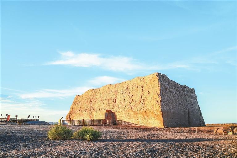 歲月洗禮,如今的陽關已沒了蹤跡,只剩下一片叫作“古董灘”的洼地,和遠處的陽關烽燧。戈壁深處的玉門關,被稱為“小方盤城”,走進城中仍能感受到雄關莊嚴。往西5公里處,還能見到一段漢長城頑強挺立。