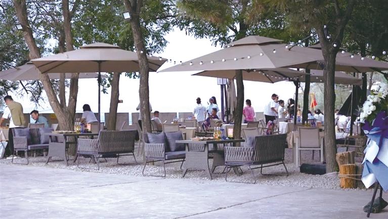 除了優(yōu)美的環(huán)境外,園區(qū)內文旅業(yè)態(tài)也十分豐富,有望河樓、紫云樓、怡翠亭三處高端餐飲,主打餐飲品牌“如意樂宴”,共有5個各具特色的主題包廂和1個文創(chuàng)餐廳,可以提供環(huán)境幽雅的高端私享空間,適合商務宴請、親朋聚會。望河樓內還有露天火鍋和咖啡酒吧,帶來“白咖夜酒”的浪漫體驗。