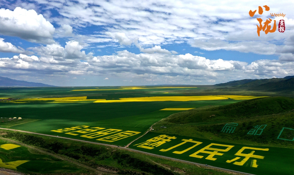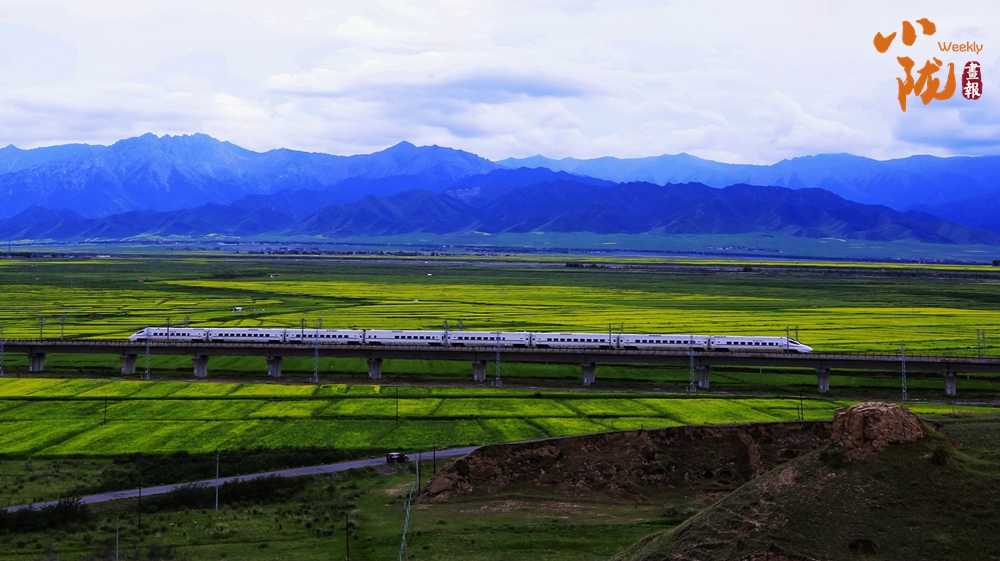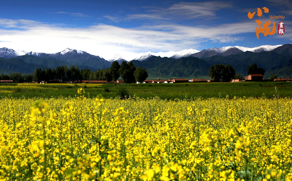 在藍(lán)天白云和祁連雪峰的映襯下,那盛開的油菜花、點(diǎn)綴在花海中的村莊人家,勾勒出一幅優(yōu)美的田園風(fēng)光畫卷。