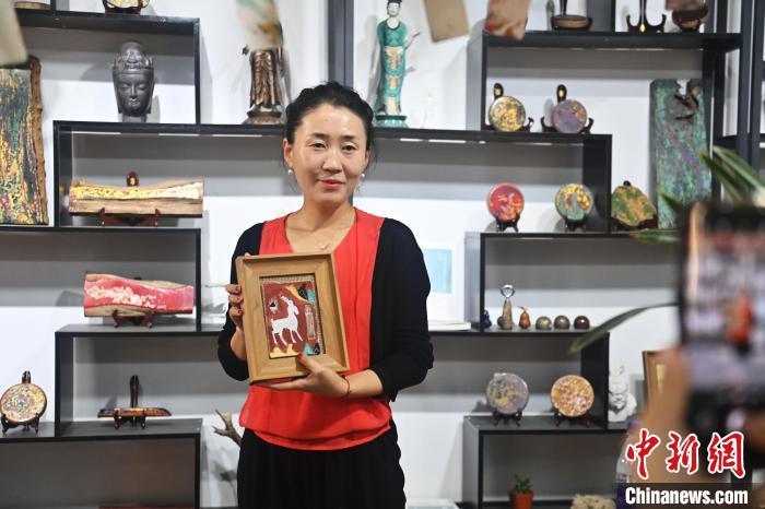 8月20日,甘肅敦煌莫高里工匠村內(nèi),學(xué)員展示研學(xué)成果。工匠村開設(shè)了泥板畫、彩繪、雕塑制作、剪紙、農(nóng)耕體驗(yàn)等課程,現(xiàn)已發(fā)展成為一個(gè)集敦煌文化講堂、壁畫書法研習(xí)、美術(shù)設(shè)計(jì)、彩塑制作教學(xué)、篆刻藝術(shù)、傳統(tǒng)釀酒體驗(yàn)、農(nóng)業(yè)產(chǎn)業(yè)發(fā)展等于一體的多功能實(shí)訓(xùn)基地。中新社記者 李亞龍 攝