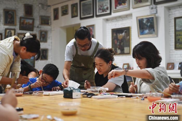 8月20日,甘肅敦煌莫高里工匠村內(nèi),學(xué)員體驗(yàn)敦煌文化研學(xué)課程。工匠村開設(shè)了泥板畫、彩繪、雕塑制作、剪紙、農(nóng)耕體驗(yàn)等課程,現(xiàn)已發(fā)展成為一個(gè)集敦煌文化講堂、壁畫書法研習(xí)、美術(shù)設(shè)計(jì)、彩塑制作教學(xué)、篆刻藝術(shù)、傳統(tǒng)釀酒體驗(yàn)、農(nóng)業(yè)產(chǎn)業(yè)發(fā)展等于一體的多功能實(shí)訓(xùn)基地。中新社記者 李亞龍 攝