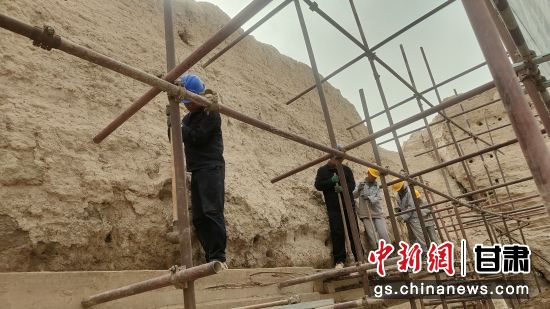 “主要保護措施有夯筑支頂加固、裂隙注漿、風蝕凹槽加固等,現(xiàn)已完成總工程的90%,計劃11月中旬全面完工。”敦煌研究院文物保護技術(shù)服務(wù)中心鎖陽城遺址內(nèi)城東墻保護修繕工程修復(fù)技師張鑫說。