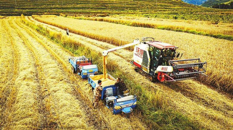 金秋時(shí)節(jié),千里隴原沃野飄香,一派豐收景象。定西市的馬鈴薯、甘谷縣的辣椒、武都區(qū)的優(yōu)質(zhì)水稻、張掖的制種玉米、酒泉和嘉峪關(guān)的制種南瓜……我省秋糧收獲漸次鋪開,一幅幅秋收?qǐng)D景撲面而來,收獲的喜悅洋溢在農(nóng)戶的臉上。