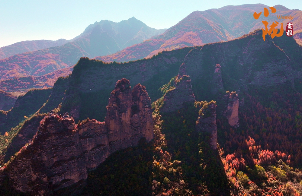 一覽眾山小,那原本就斑斕多彩的座座山巒,此刻更是被秋天賦予了更加豐富的色彩,像披上了一層絢麗的衣裳。