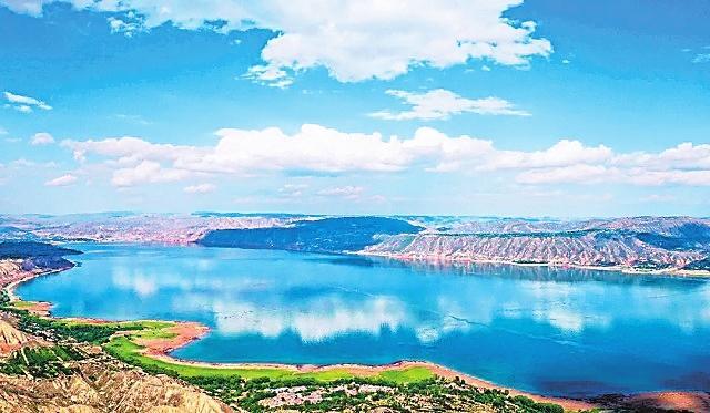 炳靈湖 雄偉的劉家峽大壩阻斷黃河,在永靖境內(nèi)聚成了一座高峽平湖。因這座湖毗鄰炳靈寺石窟和雄奇險秀的炳靈石林,故稱其為炳靈湖。整個湖水,在夏秋季呈綠色,就像一塊翡翠鑲嵌在群山之中,散發(fā)著耀眼的光芒,夏秋呈翡翠色,冬春呈藍色,由于水質(zhì)清澈,群山倒映水中,水天一色,加之湖面廣闊無垠,看上去平靜如海。但每當劉家峽水庫泄洪的時候,磅礴的氣勢猶如蛟龍出水,翻江倒海,氣沖云天。