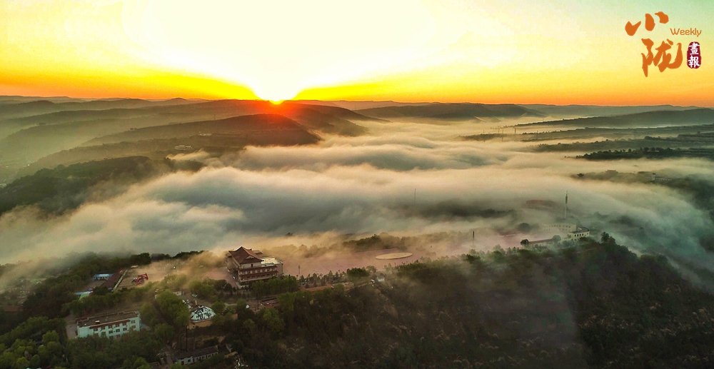 雨后,那些云霧如海浪般向四周漫延,蒼翠碧色的黃土塬仿佛置身于云海之上,若隱若現(xiàn),猶如仙境。
