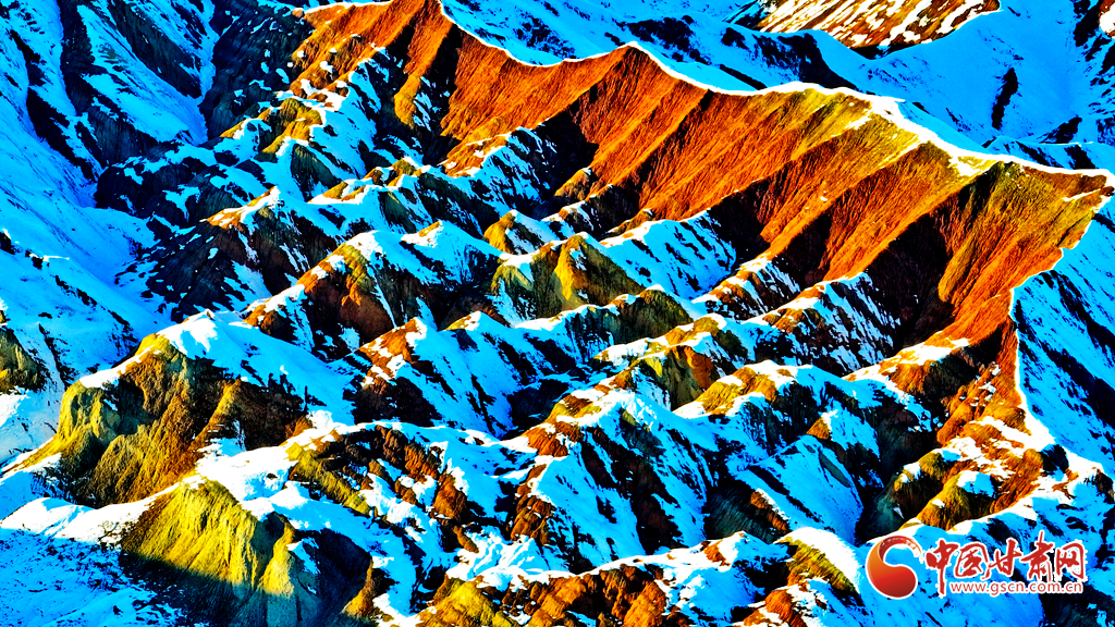 11月25日,雪后初晴,夕陽溫柔地斜灑在七彩丹霞之上。潔白的雪花輕輕覆蓋在這片斑斕絢麗的巖層上,這里仿佛是人間仙境,展現(xiàn)出一幅令人嘆為觀止的絕美畫卷,讓人沉醉不已。