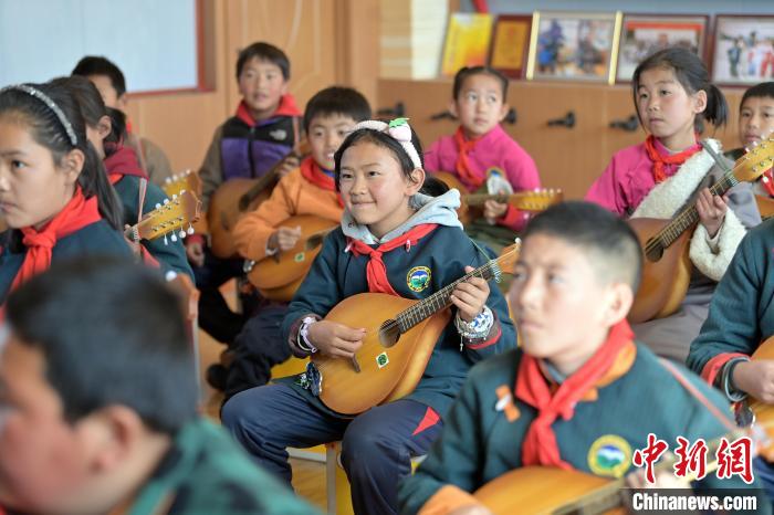 2月26日,甘肅省甘南藏族自治州瑪曲縣寄宿制藏族小學(xué)龍頭琴?gòu)棾鐖F(tuán)活動(dòng),學(xué)生們正在練習(xí)。九美旦增 攝