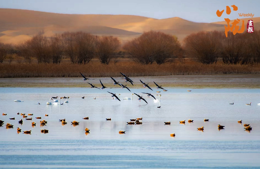 鳥類是濕地生態(tài)系統(tǒng)中最活躍、最引人注目的組成部分,也是監(jiān)測(cè)濕地生態(tài)狀況變化的一項(xiàng)客觀生物指標(biāo)。近年來,張掖國(guó)家濕地公園生態(tài)得到持續(xù)改善,使得濕地動(dòng)物明顯增加,黑鸛、大天鵝、熊貓鴨、大白鷺等都是濕地公園的常客,構(gòu)成祁連山下田野村莊一道亮麗風(fēng)景。